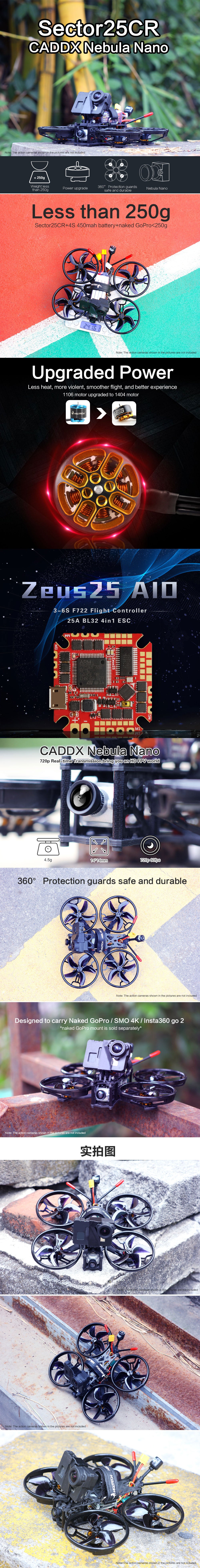 HGLRC Sector25CR Cinewhoop Sub250g(SMO 4K/Naked Gopro)Sector132 Upgraded Version 2.5'' FPV Drone Freestyle Quad with CADDX Nebula & Naked Gopro